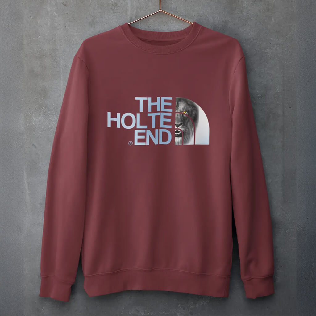 Designed by Printora specifically for dedicated Aston Villa fans, this eye-catching jumper features a bold design inspired by the iconic "The North Face" logo, replaced with a striking lion graphic and "The Holte End" text.