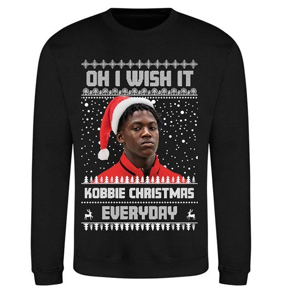 Celebrate the holidays with a playful football-themed twist! Our "Oh I Wish It Could Kobbie Christmas Everyday" jumper, inspired by Manchester United Star Kobbie Mainoo, is a must-have for Manchester United FC fans who love to mix festive cheer with a touch of humour. Perfect as a gift or a personal treat, this jumper is sure to bring smiles and seasonal spirit to any occasion.