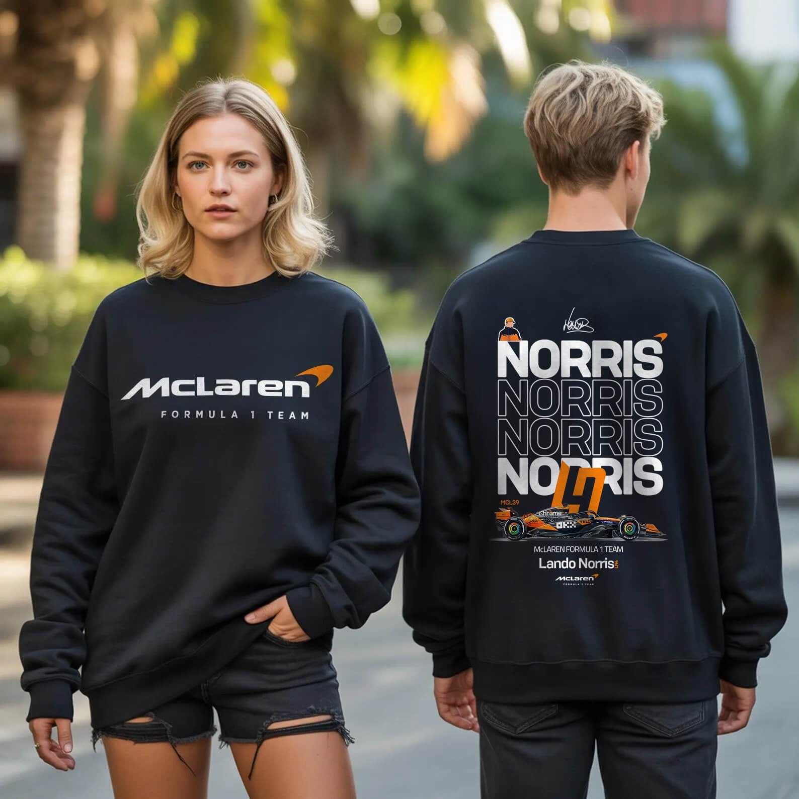 Celebrate McLaren's superstar, Lando Norris, with this stylish and fan-designed apparel collection. Available as a hoodie, oversized t-shirt, or jumper, this collection is perfect for any Formula 1 enthusiast – whether you're at the Grand Prix, watching from home, or searching for the perfect gift. Exclusively designed and printed by Printora.