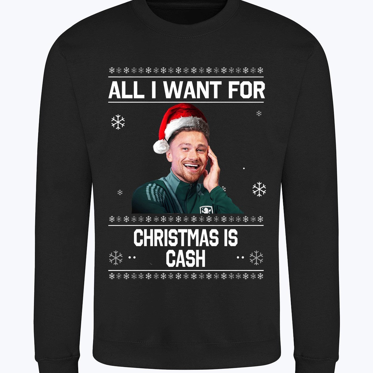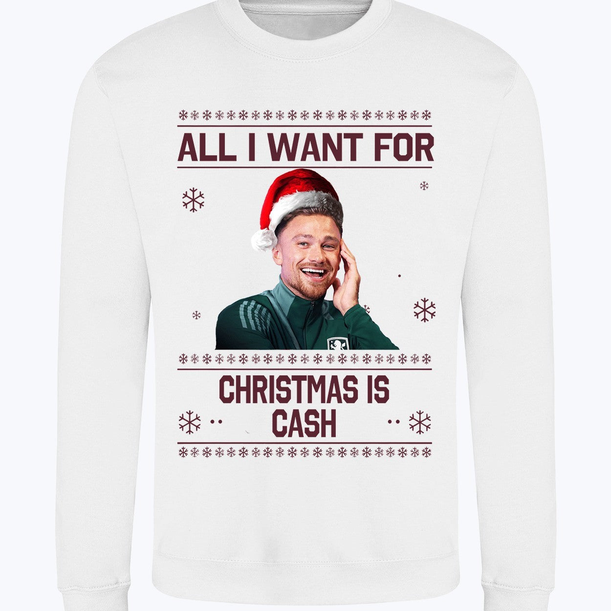 Celebrate the holidays with a fun twist on festive cheer! Our "All I Want for Christmas is Cash" jumper, featuring a playful cartoon design of Aston Villa’s Matty Cash, is the ultimate gift for football fans.