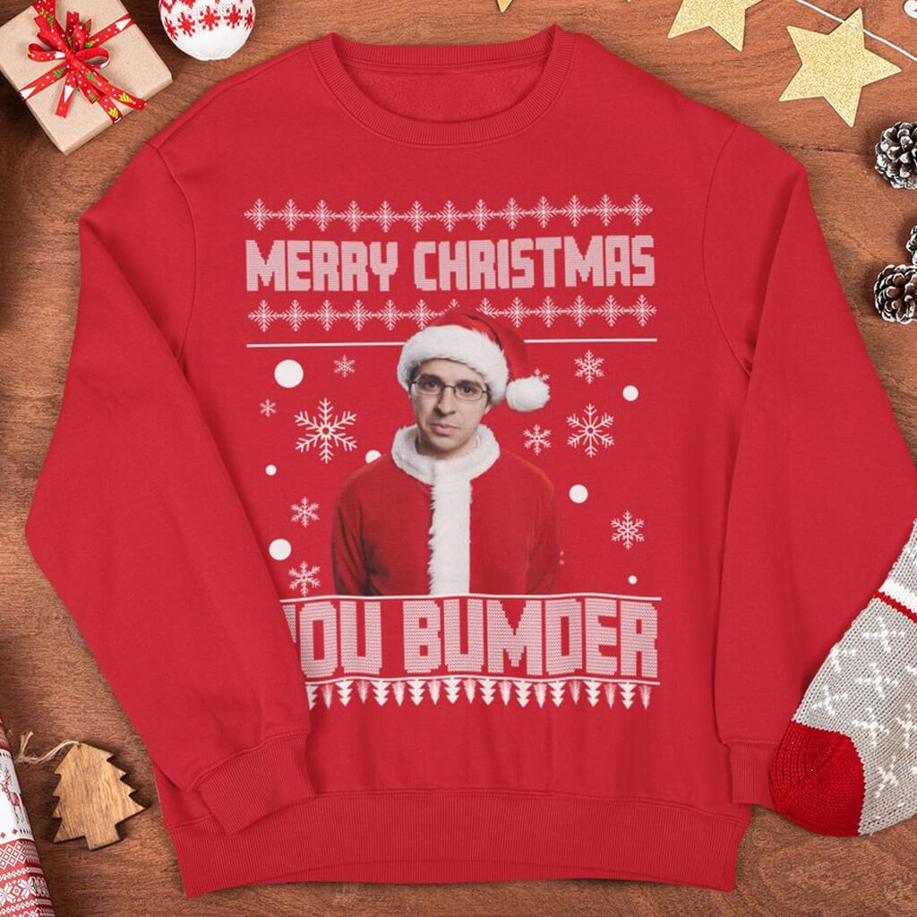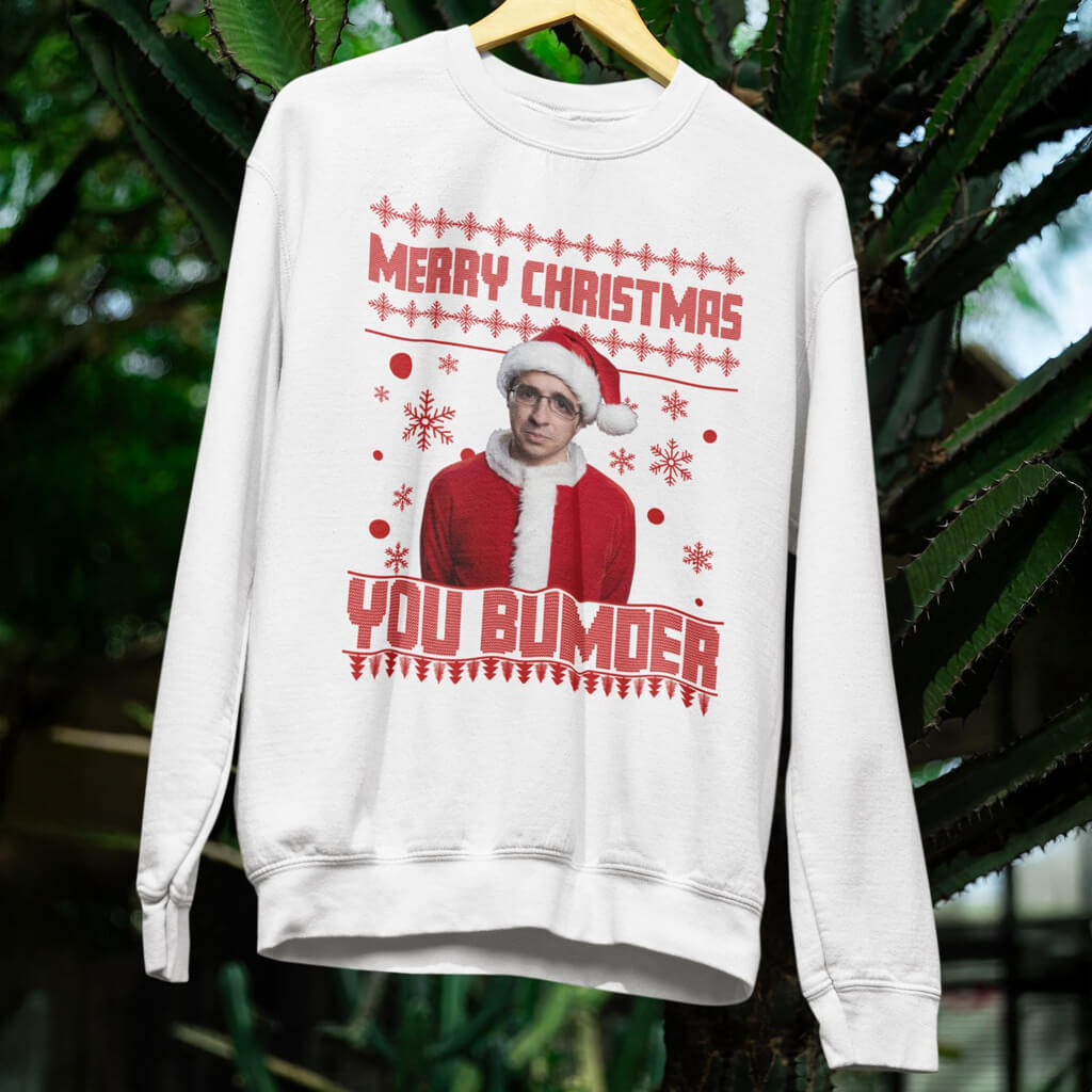 Bring some classic British humour to your festive wardrobe with our “Merry Christmas You Bumder” Christmas Jumper, inspired by Will McKenzie’s legendary line from The Inbetweeners!